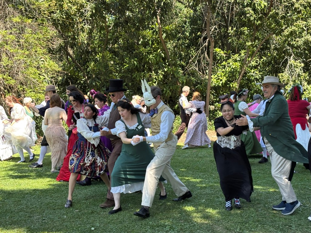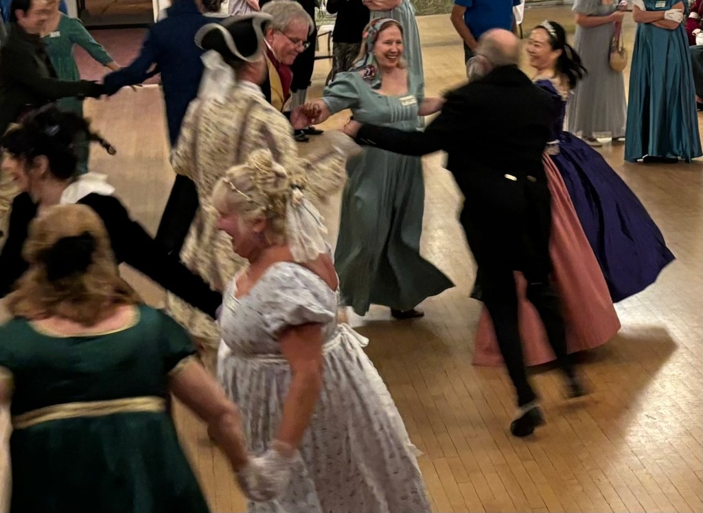 If you still can’t picture an English country dance, think of the sort of dancing you see in Jane Austen movies, or picture a more sedate (and less twirly) version of square dancing.